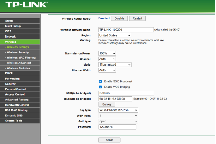 Therefore, configuration was completed using the TL-WR841N v1 Emulator, which fully supports WDS.