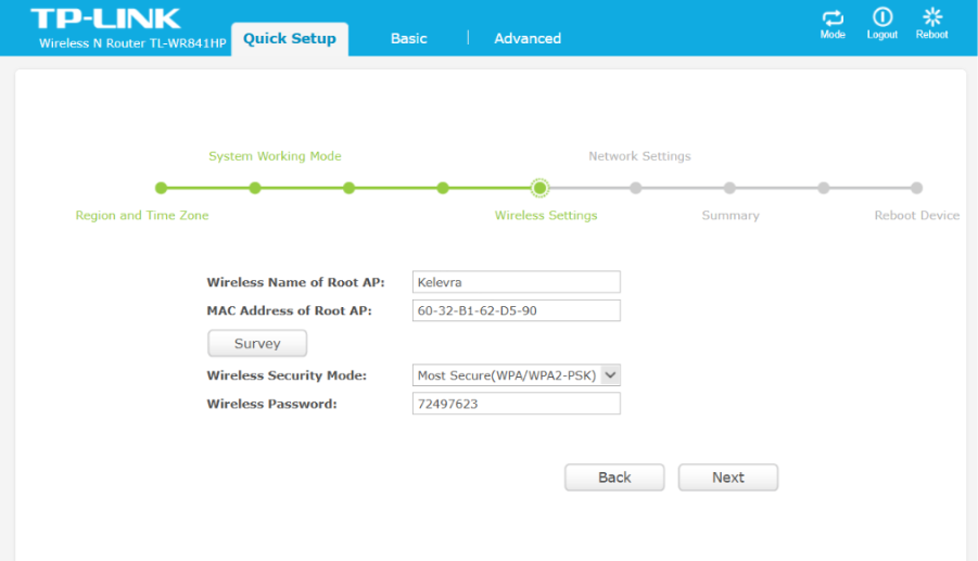 - BSSID of the Root AP entered manually