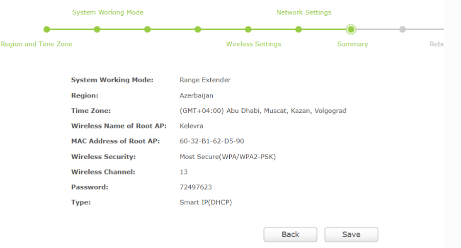 Under Network Settings, WDS mode was paired with Smart IP (DHCP) to automatically obtain addressing.