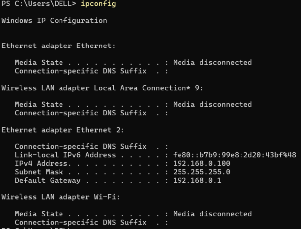 IPv4 Address: 192.168.0.100 Gateway: 192.168.0.1