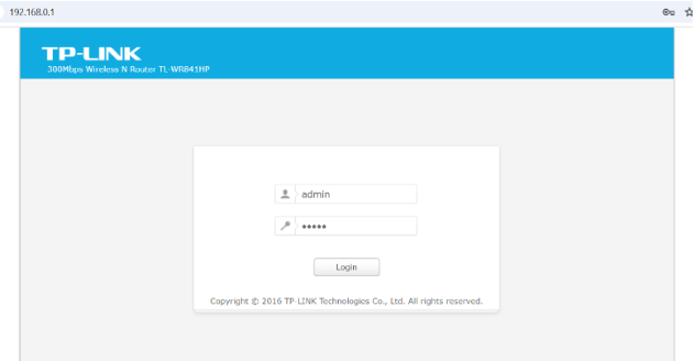 Using a browser, the following URL was opened: 192.168.0.1